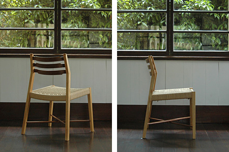 背もたれはしっかりと高さがあり、三本の笠木が背中にフィットして適度なホールド感があります。ダイニング・リビング兼用として、食事や書きものにも向くが少しくつろげるものがほしいといった幅のある用途に対応してくれる椅子です。