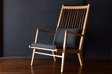 ショールームでご覧になった椅子を気に入っていただき、同じ形で樹種やクッションの張地をお選びいただいてI様仕様の椅子が完成しました。